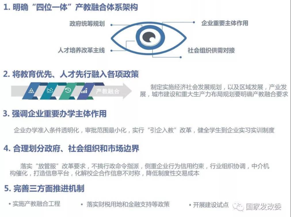 28天後,12月(yuè)19日(rì),國(guó)務院辦公廳發布《關于深化(huà)産教融合的(de)若幹意見(jiàn)》,從(cóng)7個(gè)方面對(duì)産教融合提出了(le)30項措施意見(jiàn),要(yào)求“用(yòng)10年(nián)左右時(shí)間(jiān),教↕育和(hé)産業(yè)統籌融合、良性互動的(de)發展格局總體(tǐ)形成”。